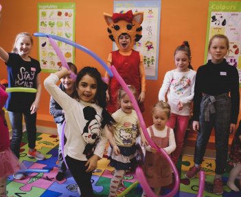 Английский язык является для нас языком творческого общения. Не важно, каким уровнем знаний обладает ребенок– он может стать маленьким актером и сыграть самую настоящую роль в Английском Театре. Музыка, танцы, ритмика, пение, актерское мастерство – дети погружаются в удивительный мир искусства, где они творят на английском языке.